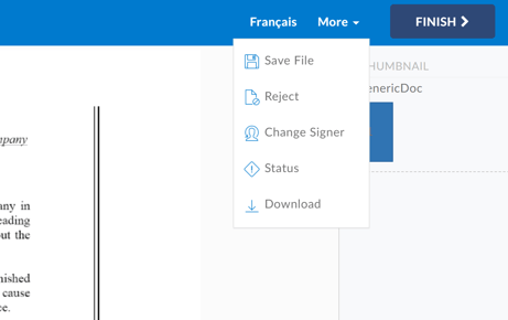 Hide download button option, the signer will no longer be able to download the document that they are currently signing. All of these options are normally found under the "more" tab during the signing process, but can all be hidden away.
