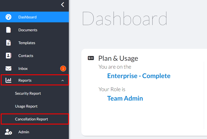 Accessing your Cancelled Report can be done using the left sidebar menu. On the bottom of this menu you will see an icon labeled Reports. From the User Menu, click