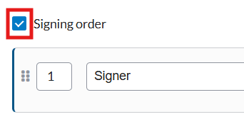 - You can also create a signing order by selecting the Signing Order checkbox and reordering the recipients by either dragging them or typing in their order number. This allows you to create a sequence for your signers and further customize the workflow to fit your needs.
