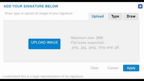 - Draw, Type, or Upload the default signature design you want. Click Apply when you're happy with it.