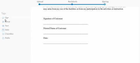 - Drag and drop the tags into place and fill it in immediately as you go (this is where things differ from the normal document creation workflow)