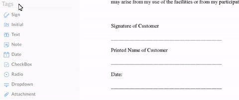 Settings button in the top. Finally, when you're finished with the setup, drag and drop the needed tags and assign them to the right signers.