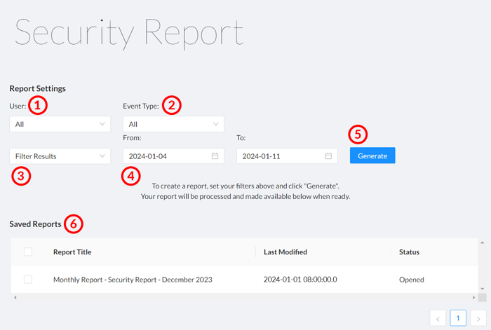 - Once you receive the email, go back to the Security Report page to find your report under Saved Reports.