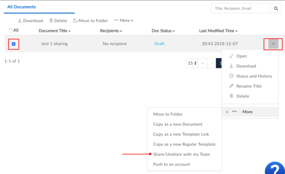 A document or a template can be shared by any of the roles within your team. When the document or the template is shared, it will be shared to the subteam where the user is in.