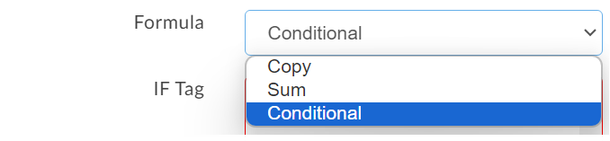 To build a conditional formula, select the "Conditional" option from the list of formulas.