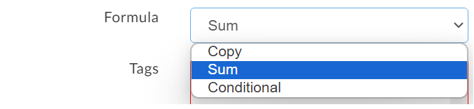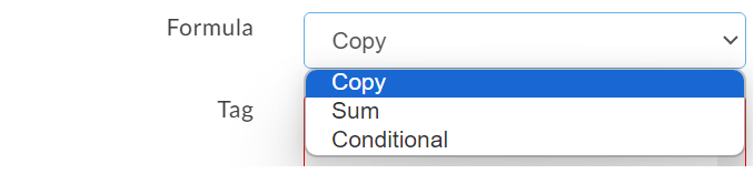 To set it up, simply choose the "Copy" option from the list of formulas. Then, choose the name of the tag you wish to copy.