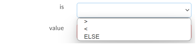 After that, select a comparison operator under "is" and a "value" to compare the tag's value to.