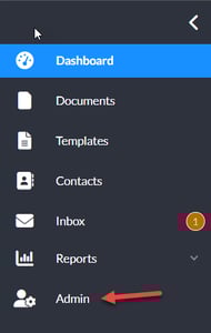 - From the user dashboard, navigate to the Admin Console by selecting Admin on the left sidebar menu.