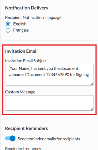 - On the Recipients page, find the Invitation Email section on the panel on the right side.