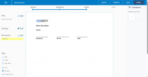 On the document editor, you can finish preparing your document for signature, add tags for recipients to fill.