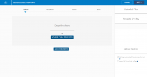 You will then be brought to the document design wizard to set up your document for e-sign. On the upload page, you can upload your files.