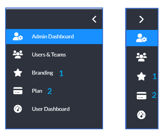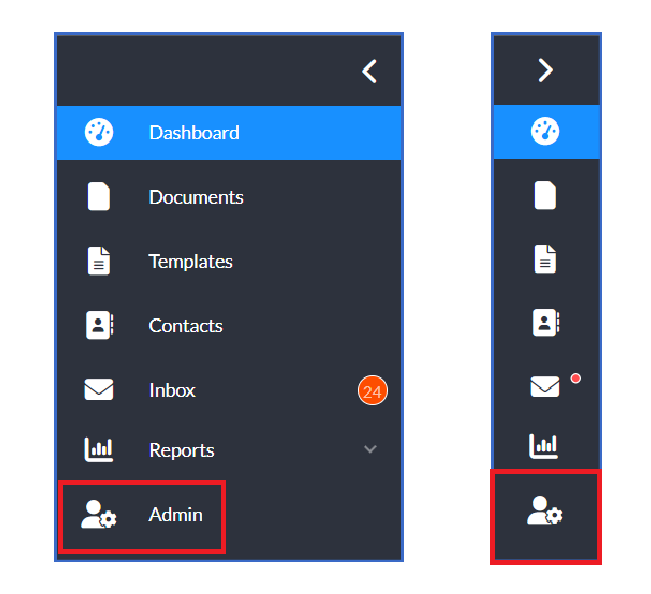 The User Dashboard is the Dashboard you see when you first sign into the Signority platform. The Super Admin has the highest level of permissions in the platform. They only thing that a Super Admin cannot do is access and manipulate the billing and plan details. On the left of your screen you will see the left hand sidebar menu. You can either keep the menu expanded as below or collapsed as seen below, using the arrow on the top right to the menu.