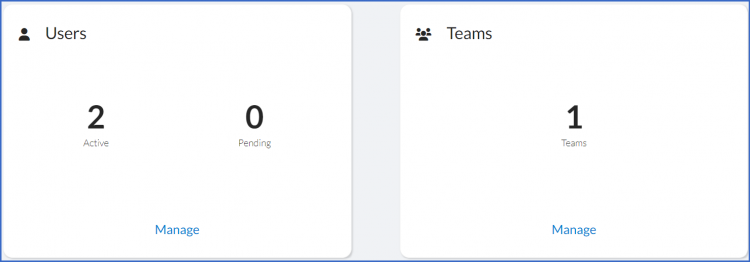 In your Super Admin Dashboard you will see that underneath the Plan & Usage tile and the Document Report tile you now have a Users Tile and a Teams Tile. These tiles show you how many users are in your sub-teams and how many teams there are in your organization.
