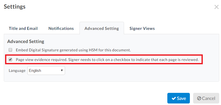 Page View Evidence feature. This feature adds a checkbox to the bottom of every page that signers will have to mark off in order complete the document. This information then gets captured in the document history and helps prevent any issues regarding accepting the terms of the documents.